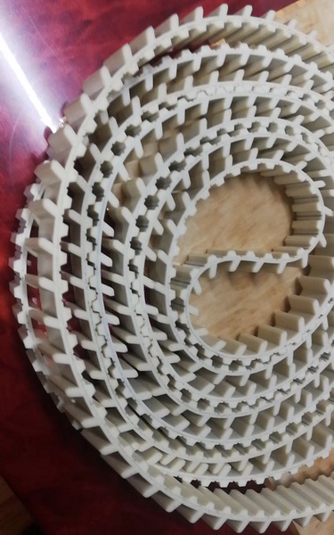 HTD-profile double-sided timing belt The belts are manufactured in different profiles: D5M* - D8M - D14M*. ● Flexibility. ● Change the rotation direction.